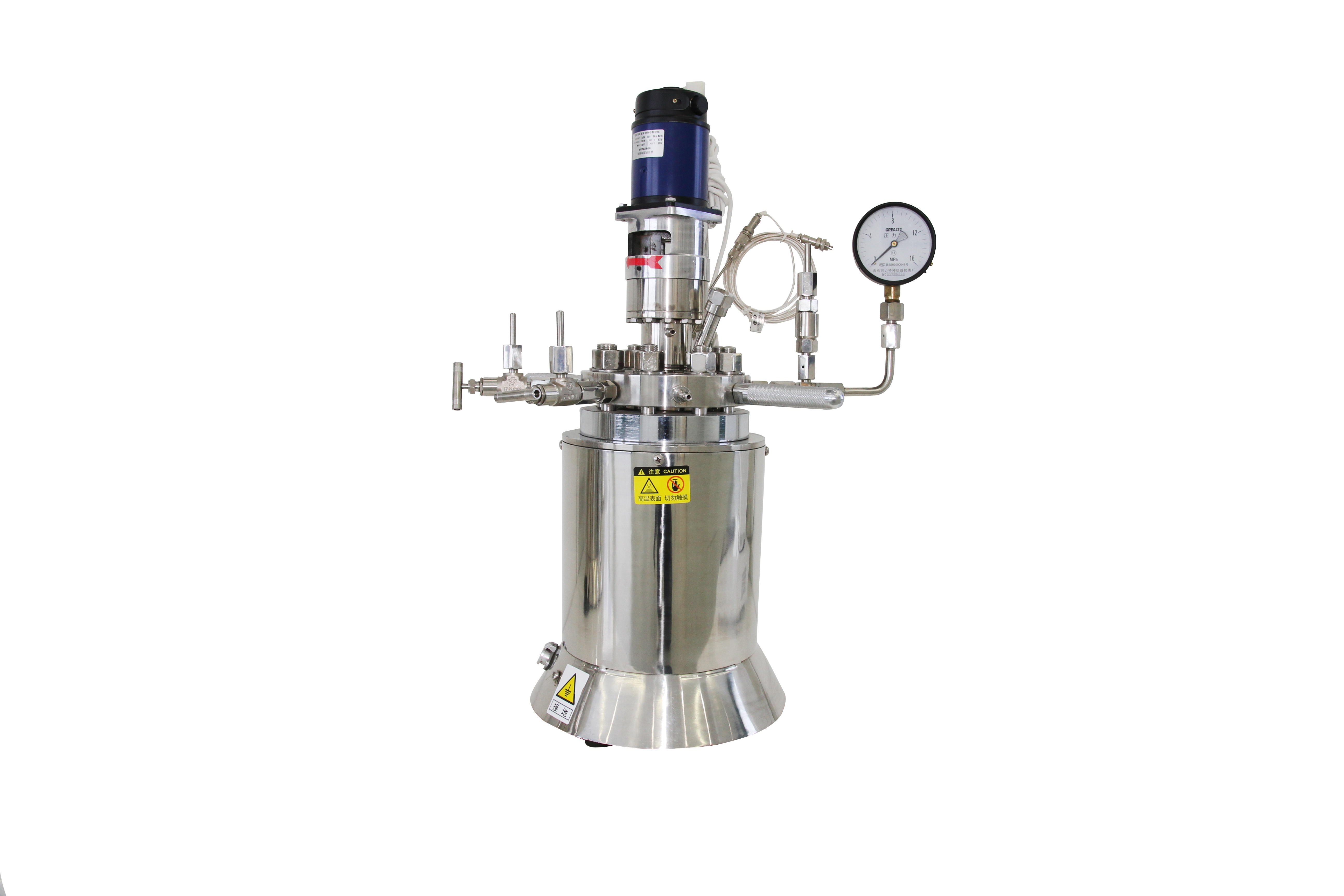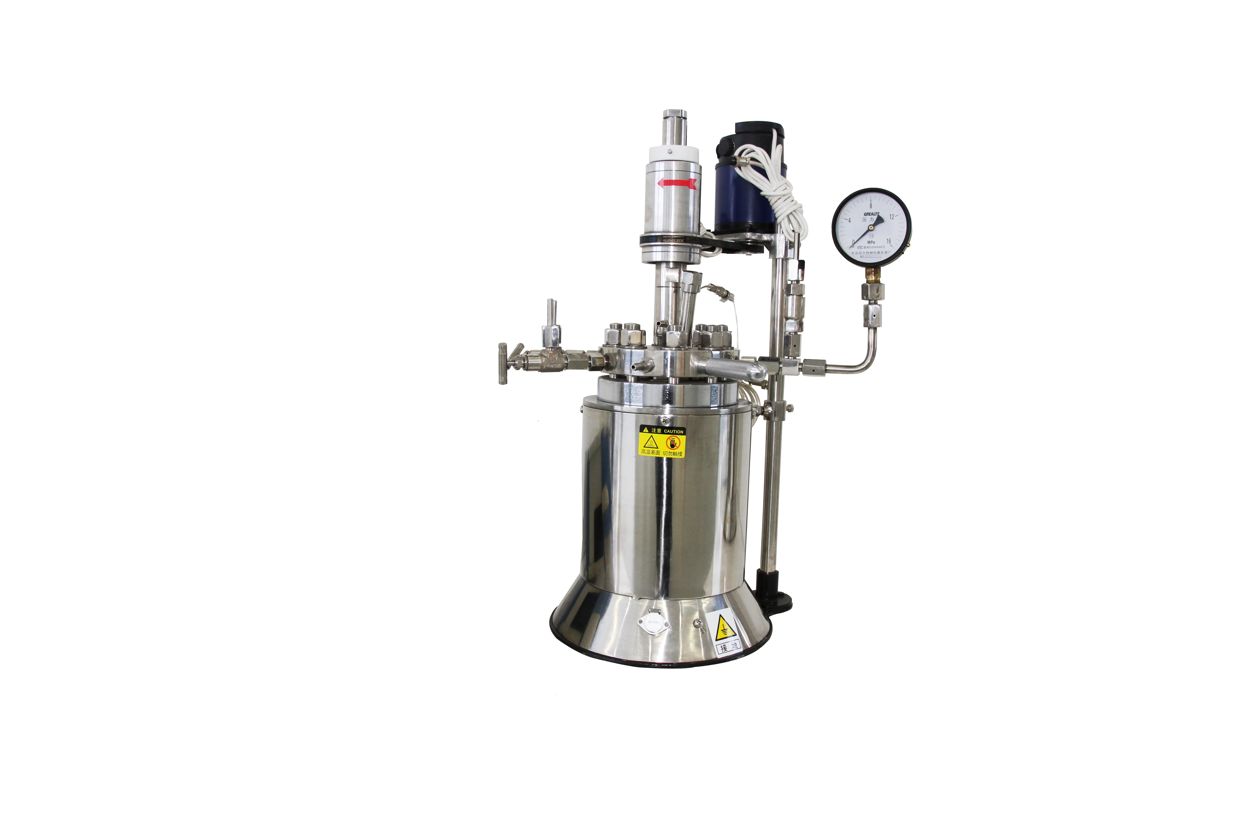 實驗反應(yīng)釜系氣—液、液—液、液—固或氣—液—固三相化工物料進行化學(xué)反應(yīng)的攪拌反應(yīng)裝置,各種化工物料在高溫高壓下充分攪拌,以強化傳質(zhì)和傳熱過程,其突出特點是采用靜密封結(jié)構(gòu),攪拌器與電機之間采購磁力耦合器聯(lián)接,由于其通過磁場無接觸的傳遞力矩,以靜密封取代動密封,能徹底解決以前機械密封和填料密封無法解決的泄漏難題,整個反應(yīng)處于絕對密封的狀態(tài)中進行,適用于各種易燃、易爆、有毒,強腐蝕等化學(xué)介質(zhì)在高溫、高壓,抽真空等極端工況下實現(xiàn)攪拌反應(yīng),是精細化工及大化工行業(yè)中氫化、氟化、硫化、氧化、聚合、縮聚等工藝最為理想的實驗用反應(yīng)設(shè)備。